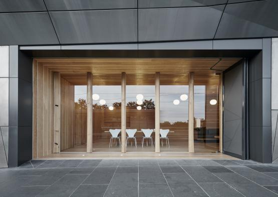 New full height glass windows held by large timber posts were used along the Flinders Street interface to create a noise and insulation barrier from the street.