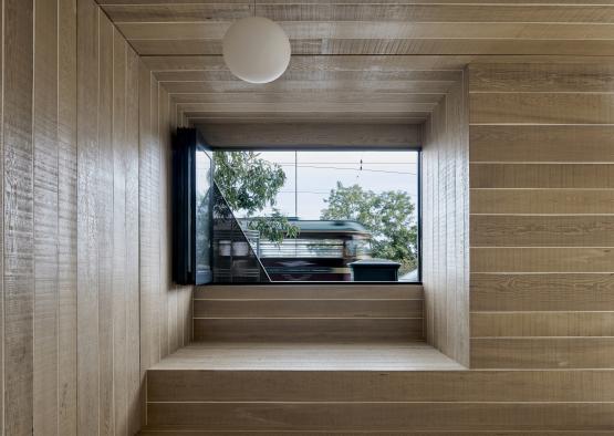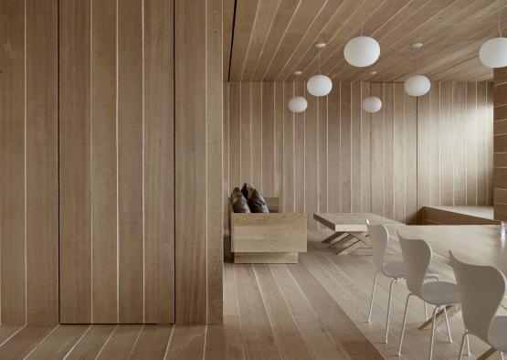 106 Flinders Street was designed as a cabin laboratory for an architectural physicist in Melbourne’s CBD. The space reconsiders the conventional workplace vocabulary and elements – conceiving a single space to work, meet and entertain. The office is a tranquil and meditative sanctuary that is entirely clad in Douglas Fir.