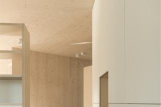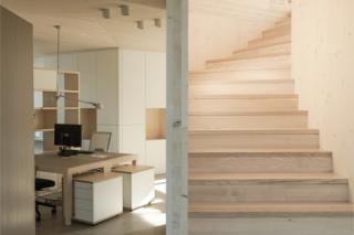 The interior spaces are enlightened by the use of light-coloured timber cladding and the large windows, creating warm rooms. There are also built-in timber furnishings in most of the rooms, taking care of many of the needs of the office users.