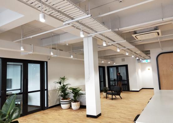 The new building spans five levels and provides approximately 3,300 square metres of commercial office space. The podium and ground levels comprise a fitness and childcare centre and a range of retail and food stores, with extensive office space above.