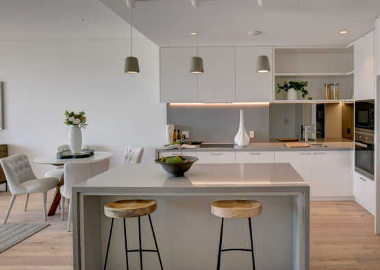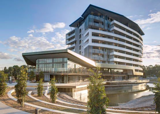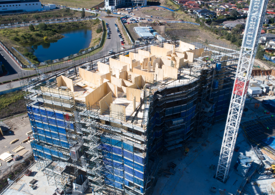 The AVEO Bella Vista building is in a way the first of its kind, breaking the mould of the typical mass timber designs for residential buildings we have seen internationally over the past decade. In order to conform to the client’s brief for this particular project there could be no obvious compromise in apartment layouts or building design in favour of specific prefabrication or mass timber construction requirements. The planning and the design of the building, including the curved and seemingly cantilevered balconies, required an innovative hybrid construction approach utilising CLT slabs and walls, Glulam beams and some structural steel.