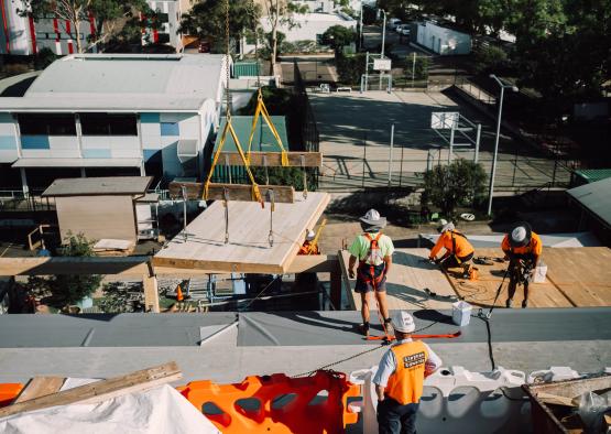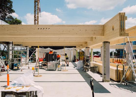 The Our Lady of the Assumption School in North Strathfield utilises an existing three-storey concrete frame base built over 30 years ago. The extension includes 4 levels of CLT and glulam post and beam structure.