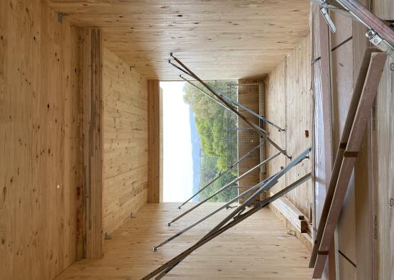 Thicker CLT panels were used for walls located directly above the V-columns, acting as structural shear walls to provide lateral bracing for the structure