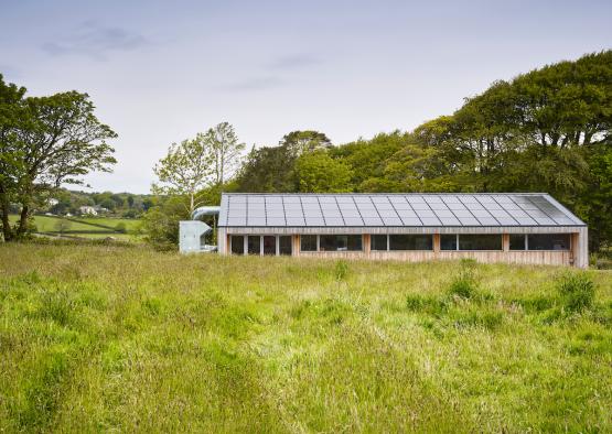 The roof form references classic agricultural forms of the region, and nestles neatly within the greater architectural palette of Cornwall.