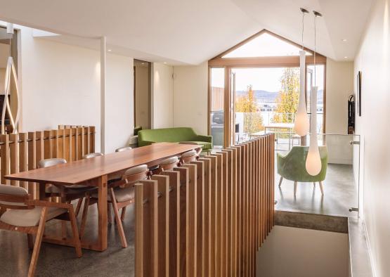 Architect and furniture designer join forces to pay tribute to the owners Robert and Ruth, who have a deep love of Tasmanian timber and support for local designers. Dunsmuir and Birrelli have used cutting-edge CAD and timber technologies at Port Officers House, purposefully connecting the arts with contemporary timber detailing and manufacturing.