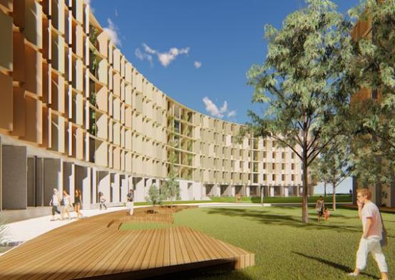 Construction is well underway for a new 624 bed student accommodation building for La Trobe University. It will be the largest mass timber building in Victoria, utilising 4,640 cubic meters of Cross Laminated and Glued Laminated timber, and forms part of La Trobe’s ambitious plan to transform its Bundoora campus into a University City of the Future.