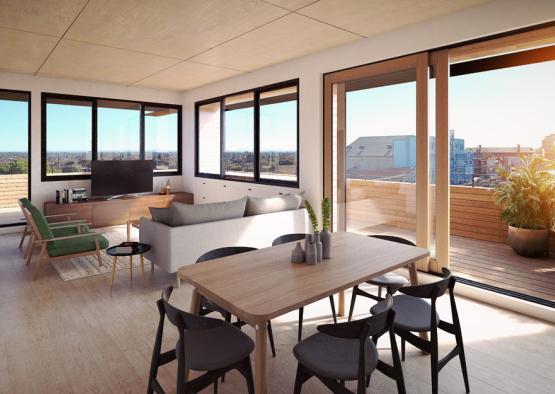 Construction commenced in 2019 and is expected to be completed in 15 months (September 2020), with the 5 floors of CLT erected in October 2019. The architect and his client are excited to be part of a natural and sustainable way of building that contributes to higher density residential development with a passive solar design and shared rooftop deck that will encourage a sense of community.