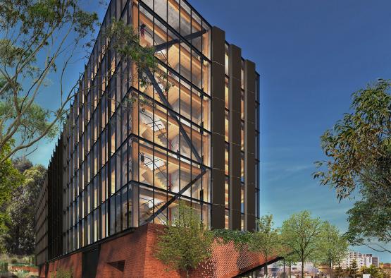 Located in the Norwest Business Park and developed by Mulpha Norwest, The Bond is a mixed use development currently in the tender design phase. The project consists of 7-storeys of mass timber glulam frame supporting Cross Laminated Timber (CLT) floor and roof panels, utilising an 8.4m x 8.4m grid.