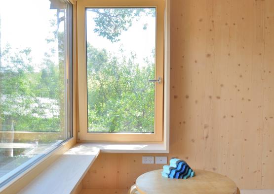 Spruce timber was used for the manufacturing of the CLT panels. All walls and ceilings were left untreated, whilst the floor was treated with a hardwax oil as it was the most used surface.