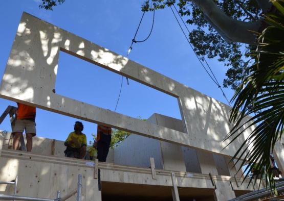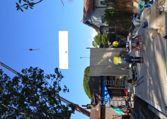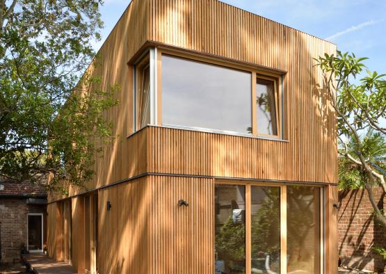 This 2-storey extension to an existing house from the late 1920s was erected in a tight backyard using prefabricated mass timber.