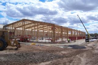 When Alpine MDF Industries needed a new warehouse for its MDF moulding plant and pre-prime paint line, it looked to its sister company in New Zealand for inspiration. Nelson Pine Industries had successfully completed two much larger warehouses in New Zealand, where LVL is becoming the preferred material for certain types of commercial and industrial frame construction.