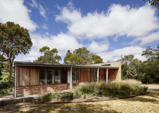 The exterior aesthetic was focused on complementing the bush setting. The timber will grey off over time and take on the qualities of a gum tree. Meeting bush fire attack level requirements supported the decision to use native hardwoods.