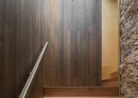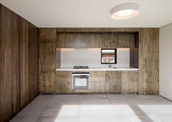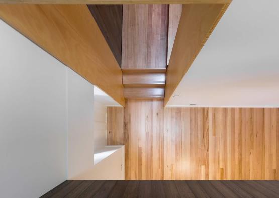Internal lining is Tasmanian oak boards, along with plywood lining for the openings.
