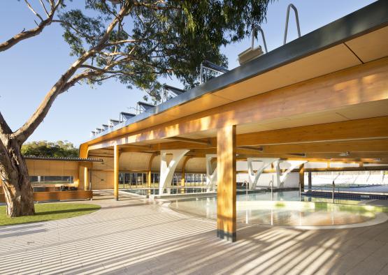 The beauty of this is that the aesthetic curves and the building’s form naturally evolved from a functional perspective until it has become something special. It is refined and puts the bushland first – shying away from the iconic commercial architecture of most Aquatic facilities. The timber sits in harmony with the bush land setting – bringing nature in to the building, and then softening the entire building with sweeping ceilings of acoustically perforated plywood, and has engaged the local community with sustainability in a gentle, yet successful manner.
