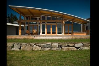 Wood frame construction is common in British Columbia, at Wakefield it helps form the curved steel roofs and flat landscape roofs that are the development's signature.