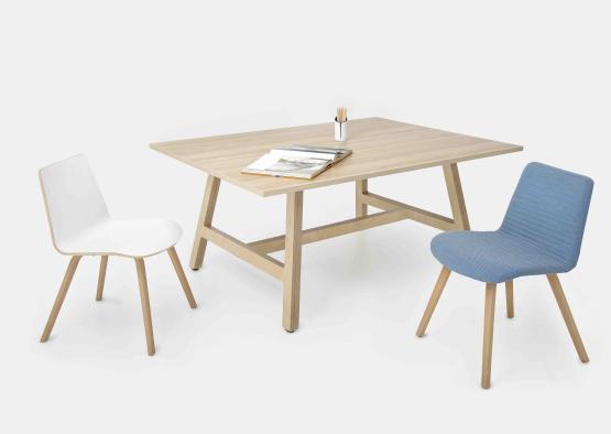 Butterfly is a versatile table system that comes knock down for the user to assemble onsite. The key to Butterfly is in its use of plywood which adds a touch of detail to the base edging while minimising wastage by using plywood offcuts from larger tables for smaller tables.