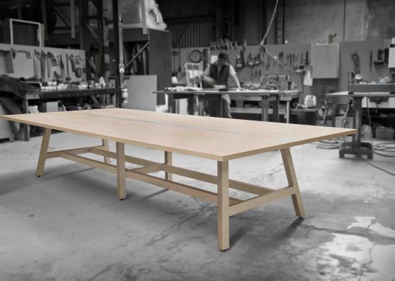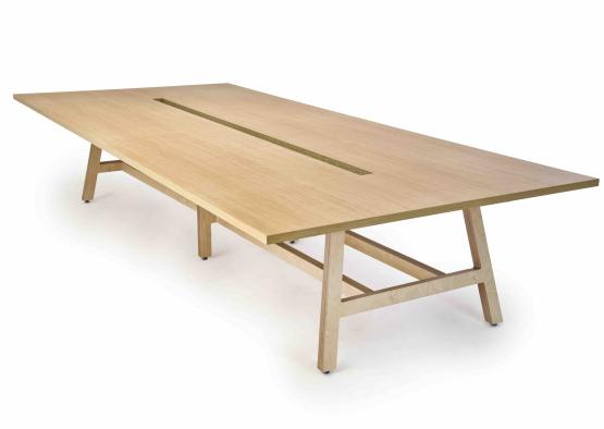 The frame is made of birch plywood and tops made in-house to ensure the best possible match with the entire table finished in a low-VOC clear coating.