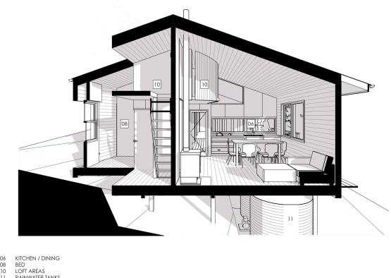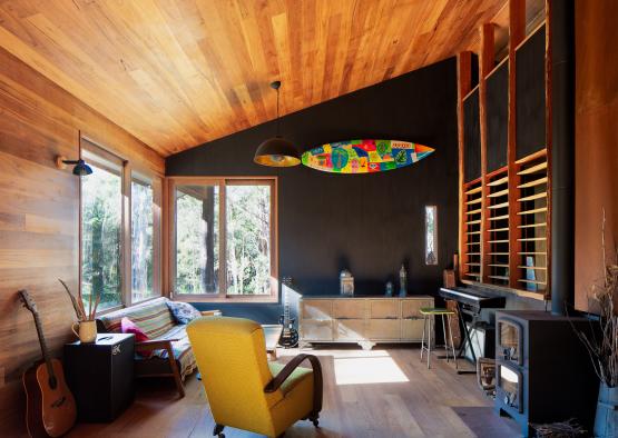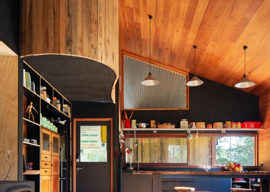 Charlottes Shack is modestly sized, completely off grid, and highly connected to its surrounds. The use of hardwoods, upcycled materials and plywood create a natural, relaxed atmosphere.
