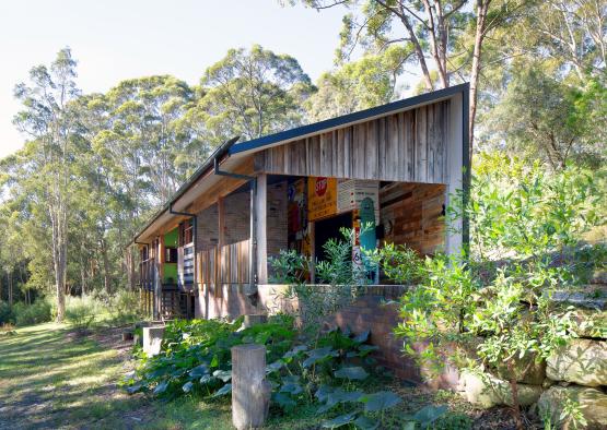 The exterior of the shack is clad in rough sawn cladding. The timber is a mixture of up-cycled silvertop ash, and new blackbutt.