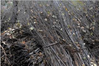 The sticks – including branches pruned from fruit trees – conceal a steel and glass box in the style of a Philip Johnson open plan design from the 1950s.