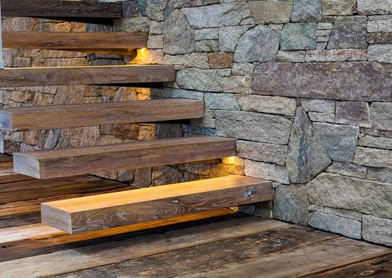 Materials are consistent from indoor to out, with stone and timber providing cohesion through a varied design influence.