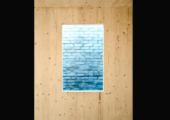 The home section of the building is south facing and sits on top of the north-facing studio. The former is horizontally-clad painted plywood using a printing technique for which the artist-client is internationally renowned. By contrast, the studio is clad in unpainted larch.