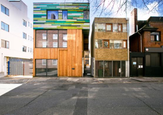 This project was a deliberate experiment in economic all-timber construction and sustaining a small local business in London. Nestled snugly between its neighbouring materials of brick and concrete, WoodBlock House adds new tactile and visual expression to the fabric of the city.