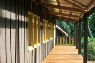 The timber framed buildings at Ngari Community High School, form part of EAA's collaboration with the Solomon Islands Ministry of Education (MEHRD) and local communities. They are part of the reconstruction program in response to the earthquake and tsunami which struck the islands in April 2007, with each building design taken from a standard set of documents that EAA formulated with MEHRD.