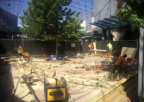 The clients brief called for the rapid design and installation of the pop up items prior to the busy Christmas period. The timber, being easily sourced and with a simple construction methodology, meant that there were very few potential risks of any on site delays. Timber also provided a level of flexibility to make minor adjustments on site to compensate any arising issues or unforeseen site constraints.