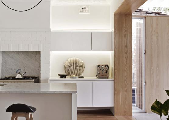 The outcome is a house with flow, open and airy living areas spilling onto the garden. It feels like an old house with integrity and a few clear contemporary insertions. The extent of the remodeling is understated. In doing a lot subtly and a few things boldly the result is a house of calm and comfortable contrast, with the experience of both the old and the new heightened.