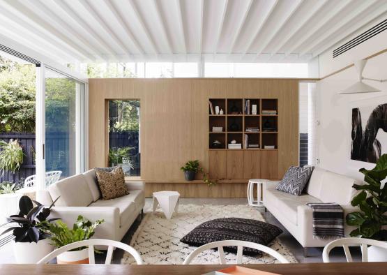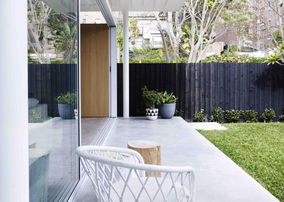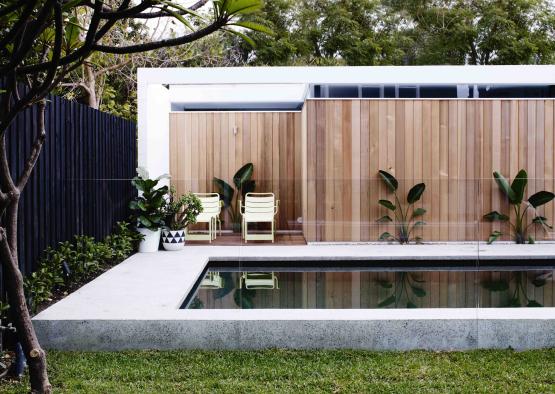 The new house offers a restored art deco era façade to the street. Works to the eastern facade included stripping off a later addition external stair and inserting salvaged stained glass windows in its place. The historic character of the building is retained and improved. There is a fresh water pool.