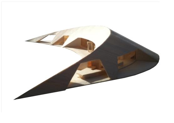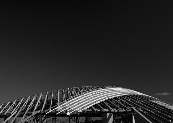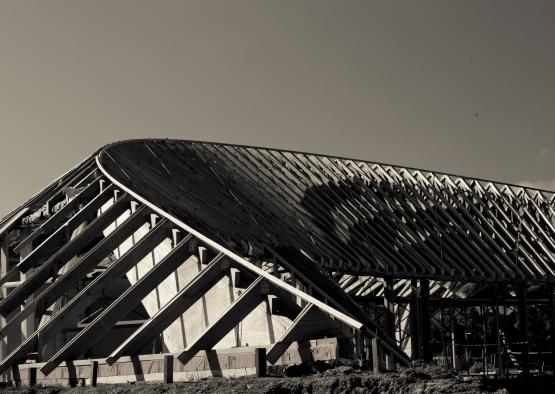 The unique roof shape required significant geometric studies to map out the convex on one side and concave on the other. Computer generated scissor trusses were designed to support the curved elements, and allowed assembly and construction by local truss makers. The building elements were prefabricated from the computer drawings to minimise waste, and the roof shape was assembled in a single day for the laminated ring beam, and a single day for the roof trusses.
