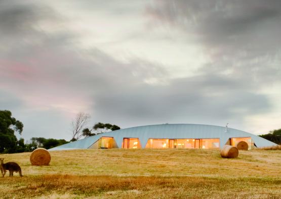 The low embodied energy of the locally sourced and renewable timber building frame adds an insulating layer to the large thermal mass of the internal rammed earth and concrete walls. The two thermal properties work together to create a high performance thermal envelope for passive living.