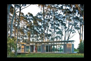 This set of three small buildings and the spaces between provides a second home for a young family within a forest clearing overlooking Golden Bay, at the top of New Zealand’s South Island.