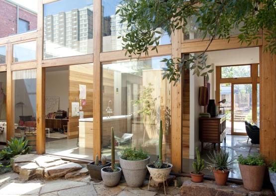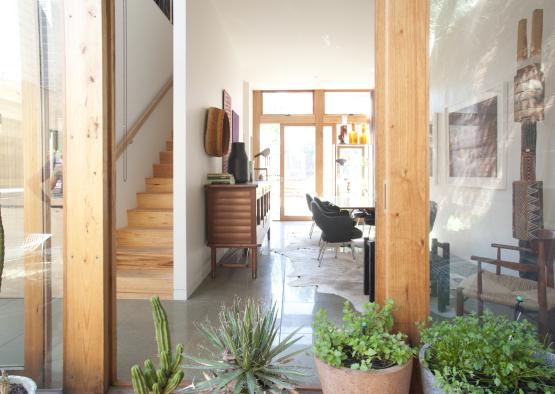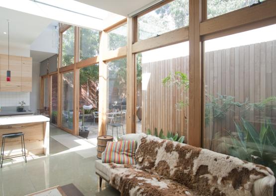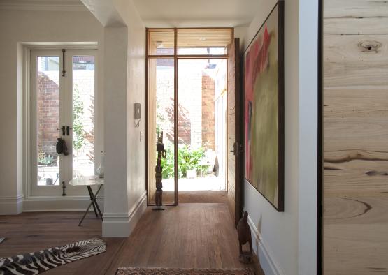 Both clients have a strong sense of their own style so it was an easy process to guide them through the design phase, which turned out to be a great collaborative process. Dean wanted a cellar, Lisa wanted a room for her parents who live out of town and they both wanted an environmentally sustainable house. Basically, we tore the house apart to let light and air into rooms that otherwise would have been very dark. This created a number of landscaped courtyards and light-wells. The glazed timber facade at the rear of the house came about as a result of relying on composition and materiality as opposed to articulation.
