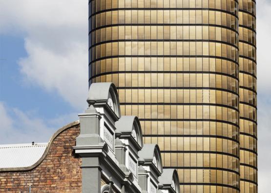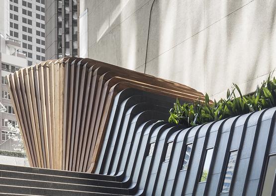 Podium Facade Fins: 1730 square metres of Prodema Rustic Composite Panel