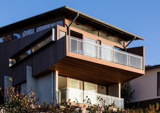 The lightweight properties of timber construction and the ash cladding assisted with achieving the soaring cantilevered decks. A mixture of steel and solid timber were used to achieve the cantilever.