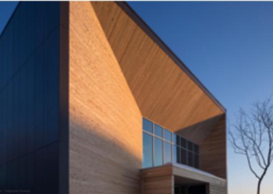 The exterior of the building features high performance concrete siding combined with eastern cedar – creating a result that is simple and dynamic. Attention given to the relationship between solids and voids lends the building an air of timeless elegance.