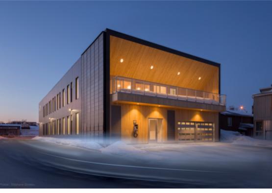 STGM’s new head office in Quebec City is a 1000 m2 two-storey structure that focuses on eco-friendly architectural innovation. The $2.7 million project delivers an exceptional level of comfort to its occupants through the thoughtful integration of a longitudinal form, orientation to the sun, a light timber structure, meticulously selected materials and efficient systems – all within a low ecological footprint.