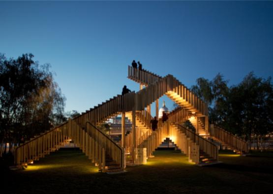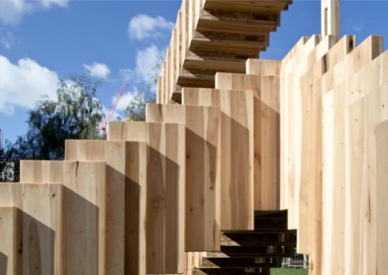 Endless Stair took inspiration from the structural, social and artistic possibilities of the staircase, the aspect of architecture most closely associated with sculpture and a place where people inevitably cross paths. Devised with M.C. Escher’s popular drawings in mind, Endless Stair is not a stair without end, but a stair designed to be endlessly reconfigured: an entirely prefabricated construction, each piece an essential part of the additive structure, where loads are transferred through demountable flights that can be recycled on another site in a different configuration. Endless Stair also took inspiration from the wood from which it was constructed and gave rise to an entirely new product using Tulip Tree wood as a cross-laminated timber (CLT) for the first time, with an extraordinary strength-to-weight ratio.