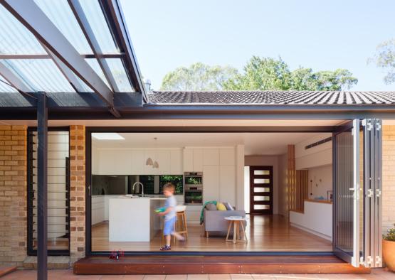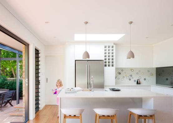 The brief for this renovation of a house in Sydney’s Belrose was for a light-filled, highly functional home that is also warm and welcoming, and timber floors were a vital element in the delivery of this. The timber aesthetic used on the front façade of the house is continued internally through timber flooring throughout the entry, living, kitchen and family rooms, creating a sense of unity and flow through the rooms. As well as bringing a warmth to the house, timber was also selected for its durability for a family of four with young children.