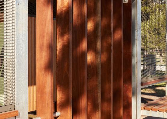 Silvertop ash wall cladding and screens suit the natural parkland setting, and have been oiled to slowly grey off naturally.