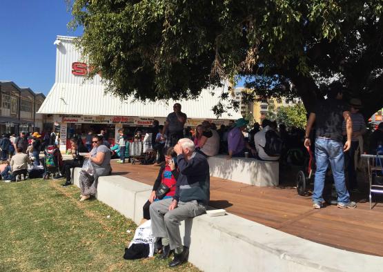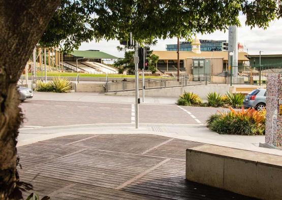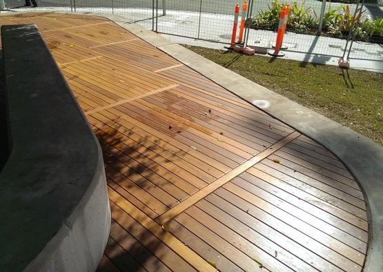 The deck was designed to give improved access to shade and amenity under a large fig in a key location of the revitalised Brisbane Showgrounds precinct. A contextual, site specific response has been achieved by using decking to protect the root system of the existing tree, allowing users to experience the full depth of the trees shade – improving pedestrian’s relationship with key historical elements in the precinct (the large existing trees). The design is organic in form mimicking the canopy of the tree above and in stark contrast to its industrial context. The authenticity that timber provides was important to the design rationale because of the historical context of the RNA precinct.