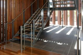 Flooring in the internal central circulation corridors is engineered Boral Silkwood Australiana Grade Spotted Gum directly fixed to the concrete slab.