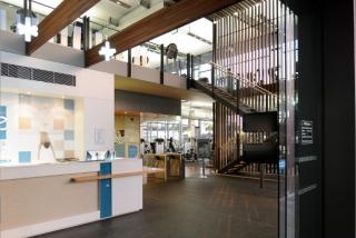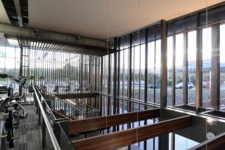 The timber blades motif is repeated in the interior as a soaring eight-metre wall feature connecting reception to the exercise areas. Graphite Architects considered and used only native Australian, recycled, and managed forest timbers in the construction to create a structure that has surpassed the client's expectations in increasing membership and usage.
