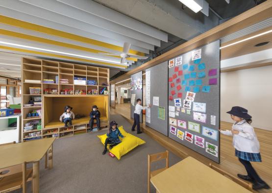 This inspirational educational space provides flexible, open learning spaces to suit small children. The design boldly removes all fixed walls between three teaching spaces, connecting them by a central timber spine.