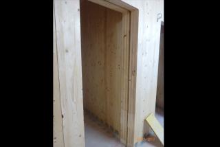 The walls are generally 128 mm thick of CLT with 13 mm fire resisting plasterboard direct fixed both sides. The bare timber wall used as a feature in the apartment is 128 mm thick of CLT. All required walls achieve the deemed to satisfy fire rating required of FRL of 90/90/90