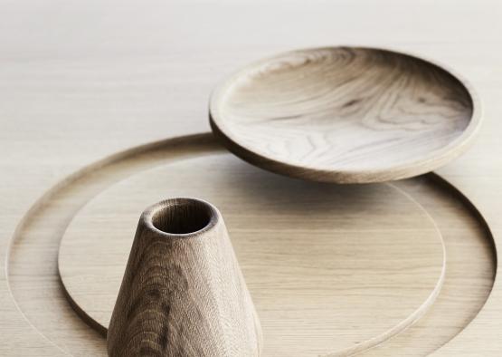 The table has two companion dining objects which reflect the clients’ differences and celebrate their union. Known as ‘Venus’ and ‘Saturn’, the vessels were each hand-turned from solid blocks of European oak. They can be rotated around the table along a purpose-built rebate, providing delight to the couple’s two-year-old daughter. Constructed from solid European oak, it continues the singular materiality used for the walls, floors and joinery in the apartment. It is finished in a matt hard wax oil which provides a lustrous finish and highlights the grain and beauty of the timber.