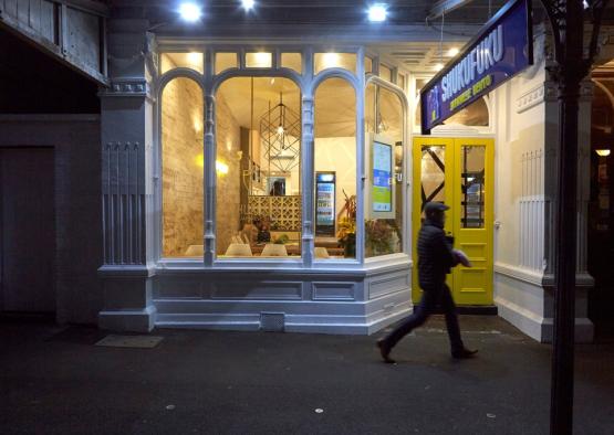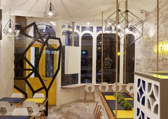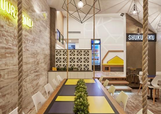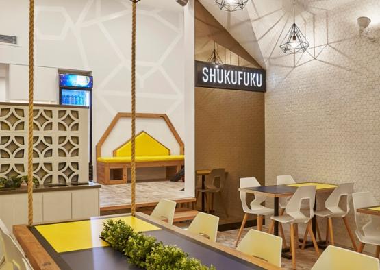 The Shukufuku Japanese Bento interior is a charismatic representation of their brand. Featuring a visually dynamic ceiling feature, a youthful lighting strategy, and an oversized steel frame Maneki-neko, the space is a bright, fun addition to the Melbourne CBD.