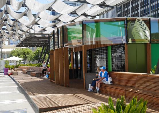 The Victoria Square Urban Lounge acts as a lively ‘backyard’ for inner city residential living, and supports small local businesses in the Central Market and Gouger/Grote Street precincts, as well as large events such as the ‘Tour Down Under’.